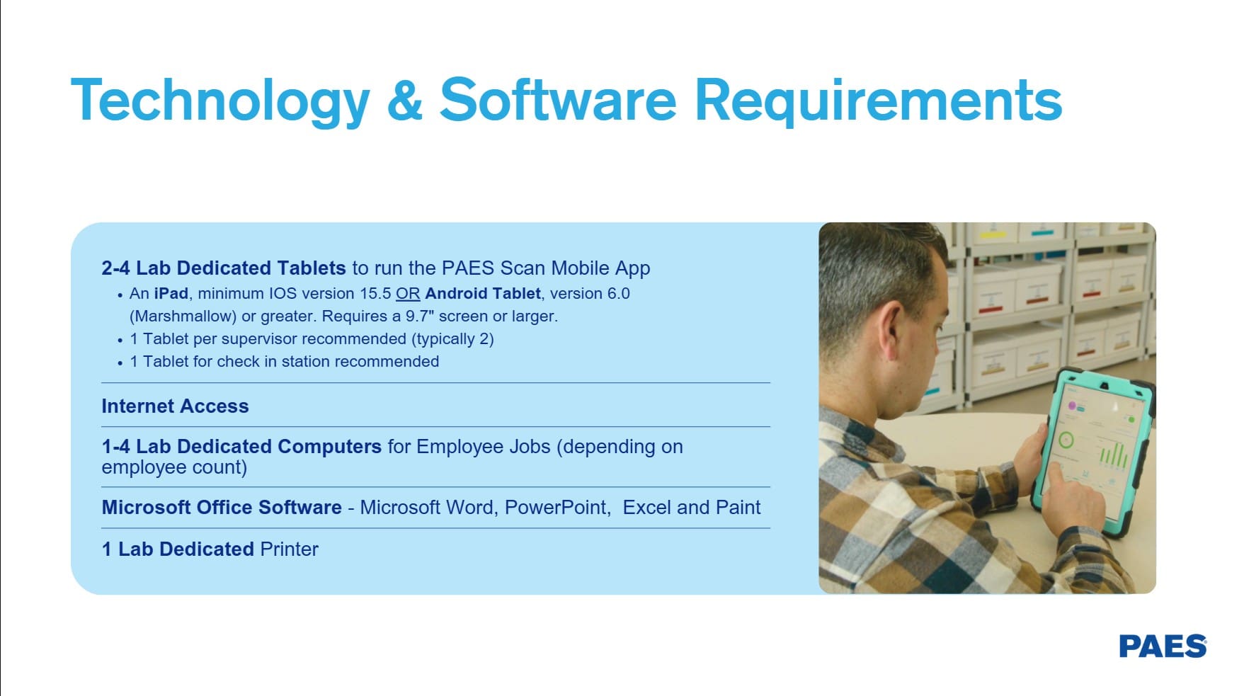PAES® Staffing and Facility Needs